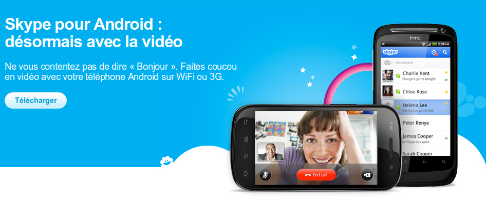 Aujourd’hui, cette fonction est donc disponible sur le HTC Desire S, le HTC Saga, le Sony Ericsson Xperia Neo et Xperia Pro et le Google Nexus S. Les appels vidéo Skype passent entre les différents OS, aussi bien par la 3G que par le réseau WLAN (WiFi). Les autres utilisateurs ne sont tout de même pas en reste, avec la fonction envoi de sms (avec les crédits Skype).