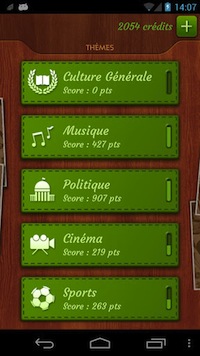 En mode Ligue, vous avez accès à un quiz général qui reprend toutes les questions au hasard en fonction du mode de difficulté choisi. En mode « contre la montre », les quiz se décomposent également en plusieurs thématiques (musique, politique, cinéma, sports, …).